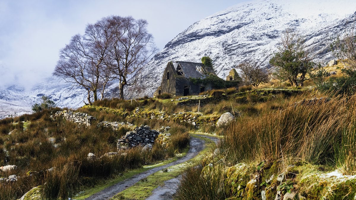 Exclusive wall art of the Black Valley cottage in wintertime, Co. Kerry, Ireland. This photograph of Stefan Schnebelt's Ireland Print Collection is available as canvas print, photo print, framed print or acrylic print.